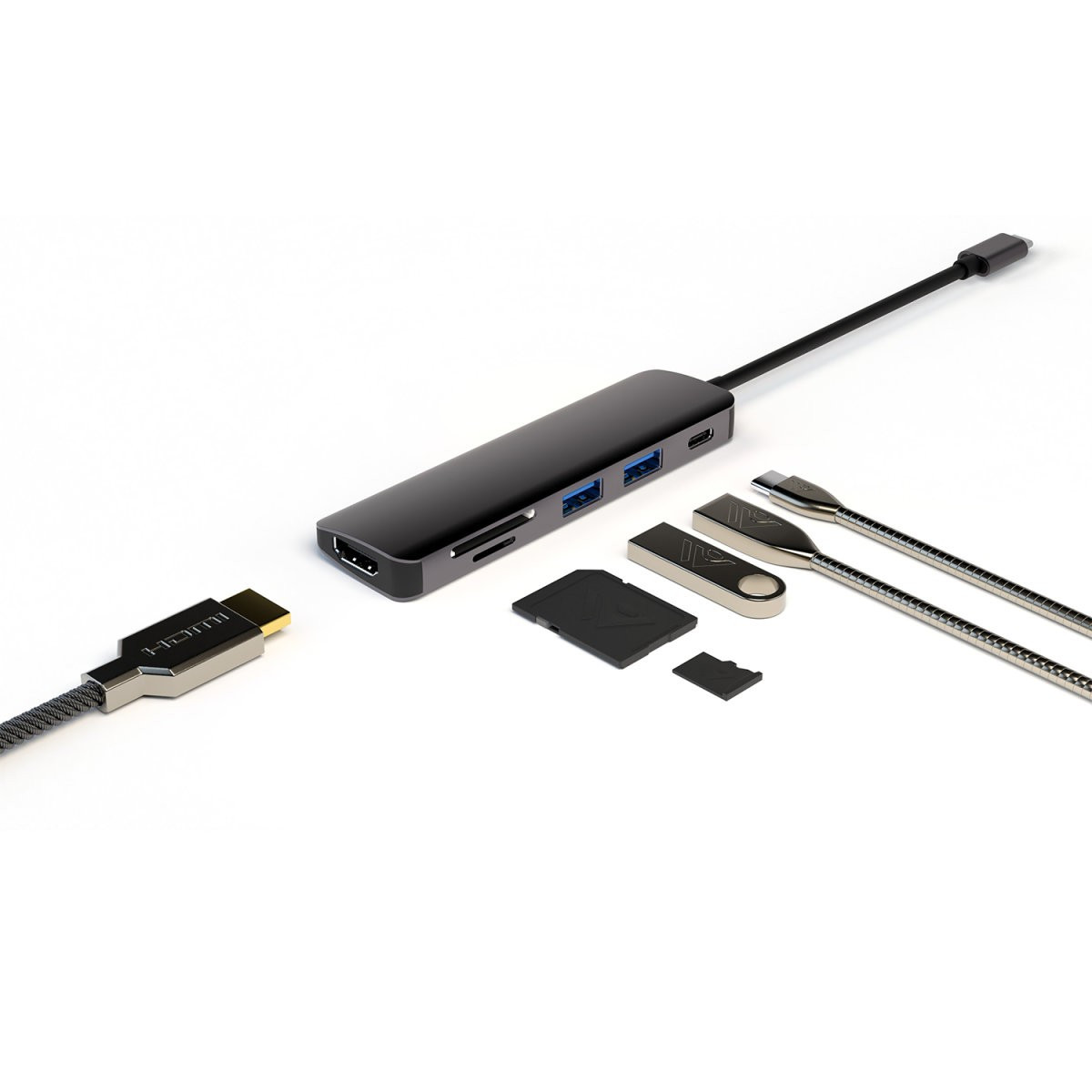 The 6 in 1 usb c multiport adapter features a PD fast charging port, a HDMI Port, USB 3. 0 Port, Ethernet, SD and TF card readers. Suitable for USB C Laptops, Mobile phones, Pad and other type c equipped devices.